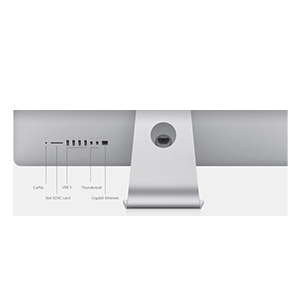 - Stockage: Disque dur de 1 To (5 400 tr/min) ou Fusion Drive de 1 To (disque dur de 500 Go + SSD de 128 Go)